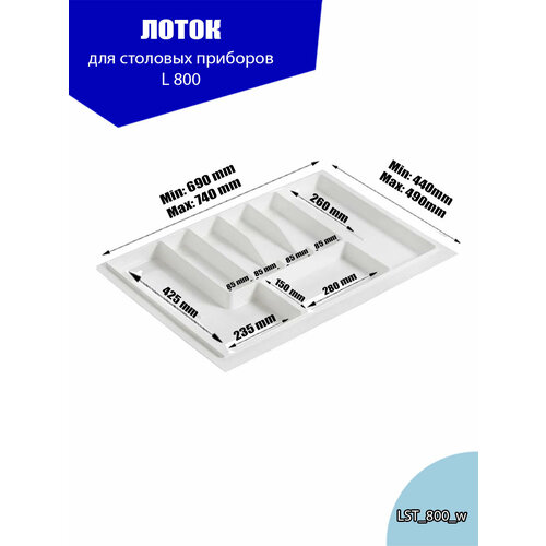 Преобразите свою кухню с помощью этого белого лотка для столовых приборов, который идеально впишется в ящик шириной 800 мм. Этот органайзер – незаменимый аксессуар для приготовления пищи, обеспечивающий удобное и организованное хранение ложек, вилок и ножей. Благодаря продуманному дизайну, каждый прибор будет находиться на своем месте, и вы сможете легко находить нужный предмет без лишних усилий.