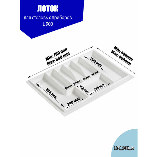 Этот лоток для столовых приборов отличается продуманной конструкцией и достаточным пространством для хранения. Предназначен для установки в ящики шириной 900 мм, что делает его универсальным решением для большинства кухонных модулей. Надежные и качественные материалы гарантируют долговечность и устойчивость к износу, обеспечивая вам долгие годы использования.