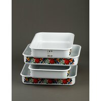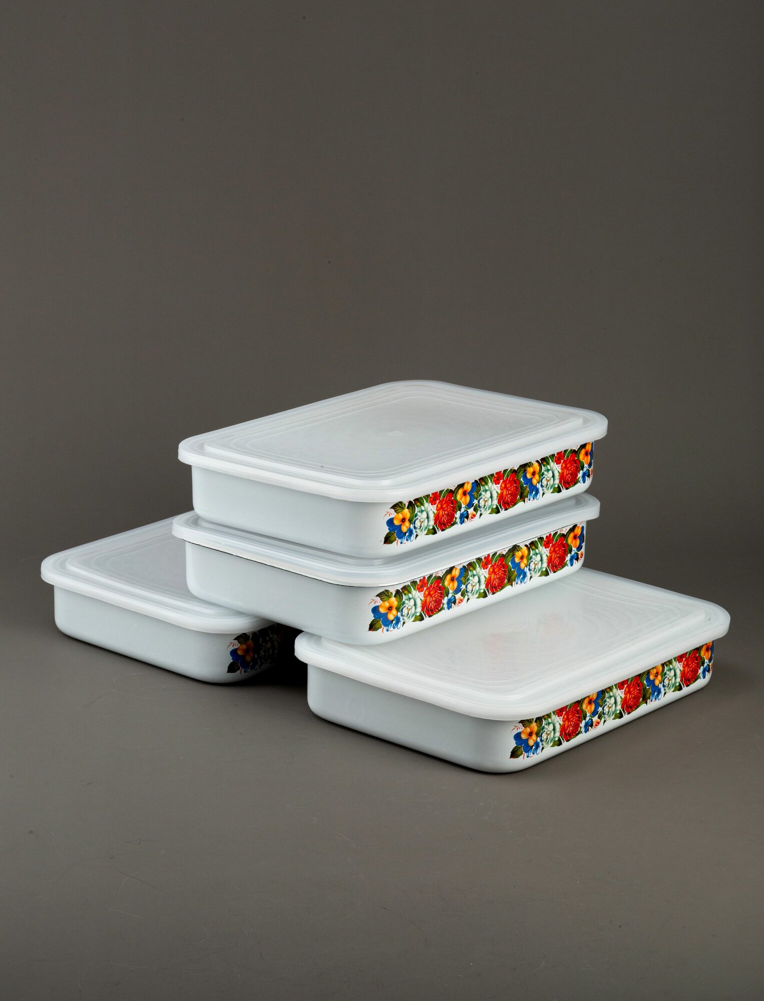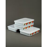 Купить Лоток эмалированный белый 2,5л с рисунком для холодца, емкость для заливного, комплект 4 шт с доставкой по всей России.