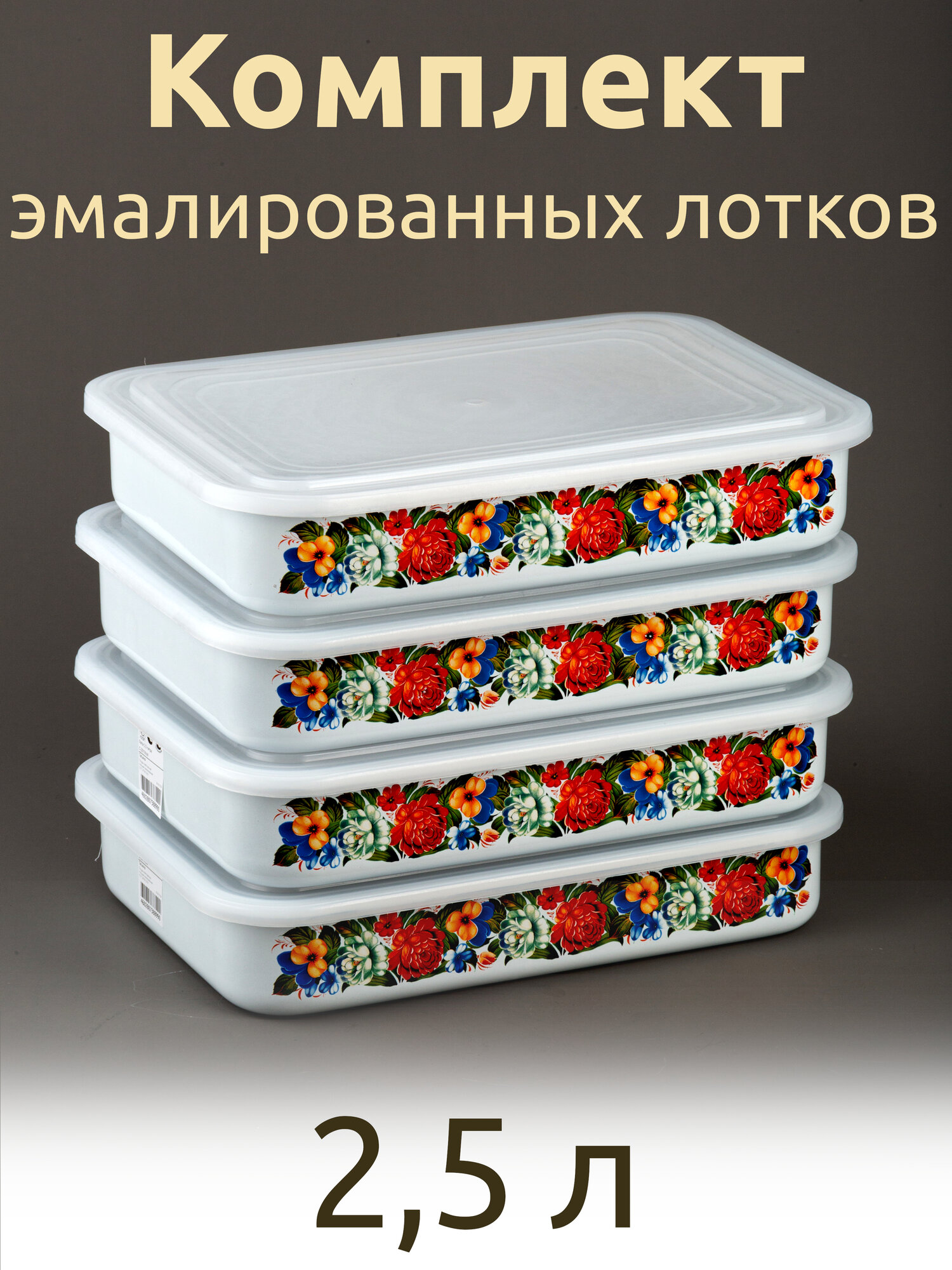 Лоток эмалированный белый 2,5л с рисунком для холодца, емкость для заливного, комплект 4 шт: сравнение цен, характеристики, фото, актуальное наличие и цены.