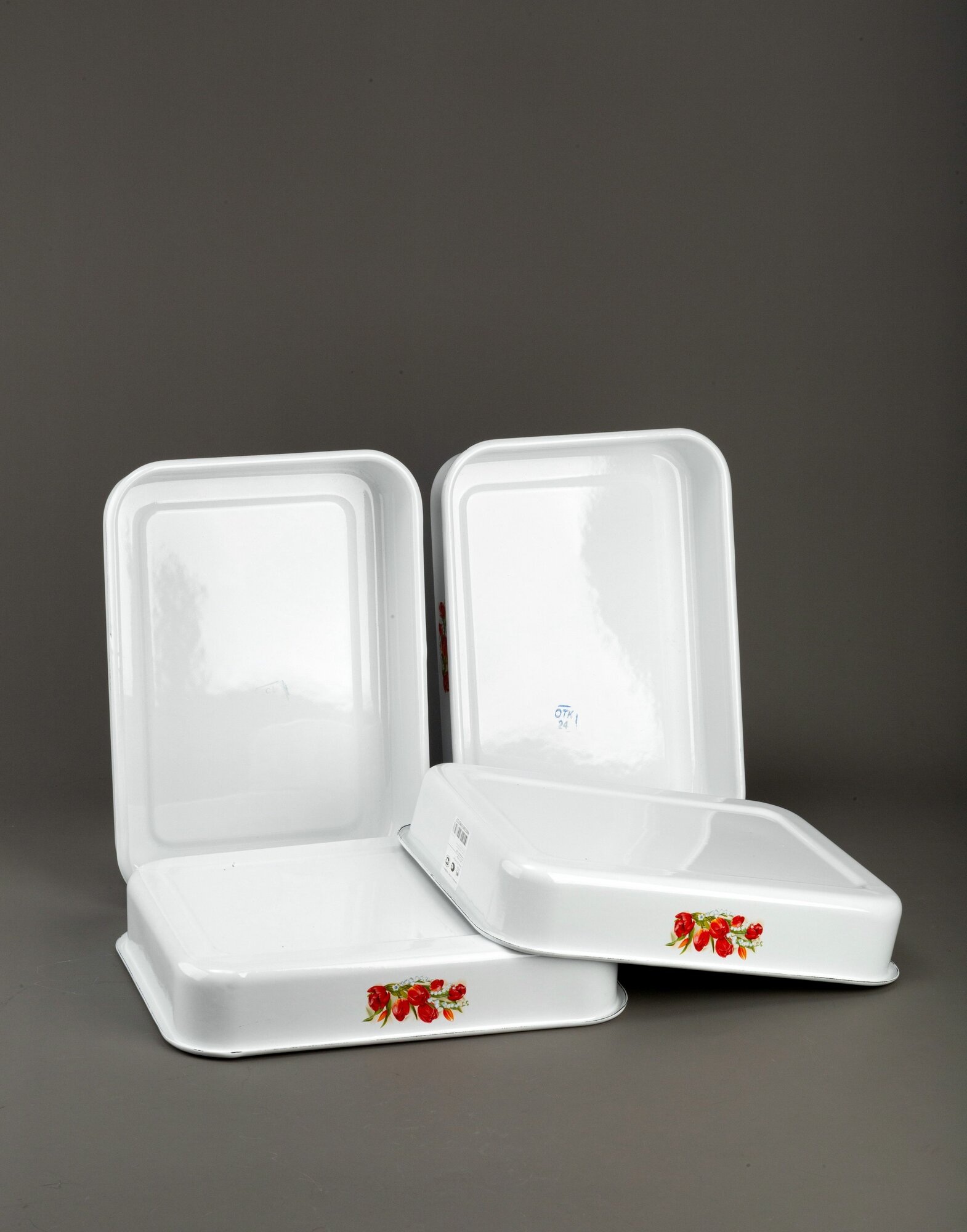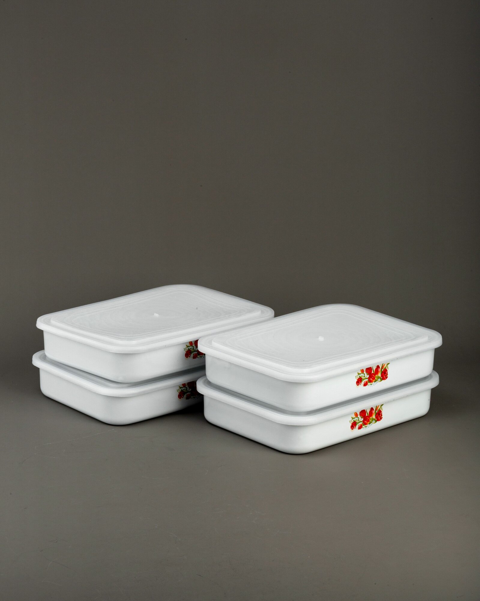 Купить Лоток эмалированный белый 2,5л с рисунком для холодца, емкость для заливного, комплект 4 шт с доставкой по всей России.