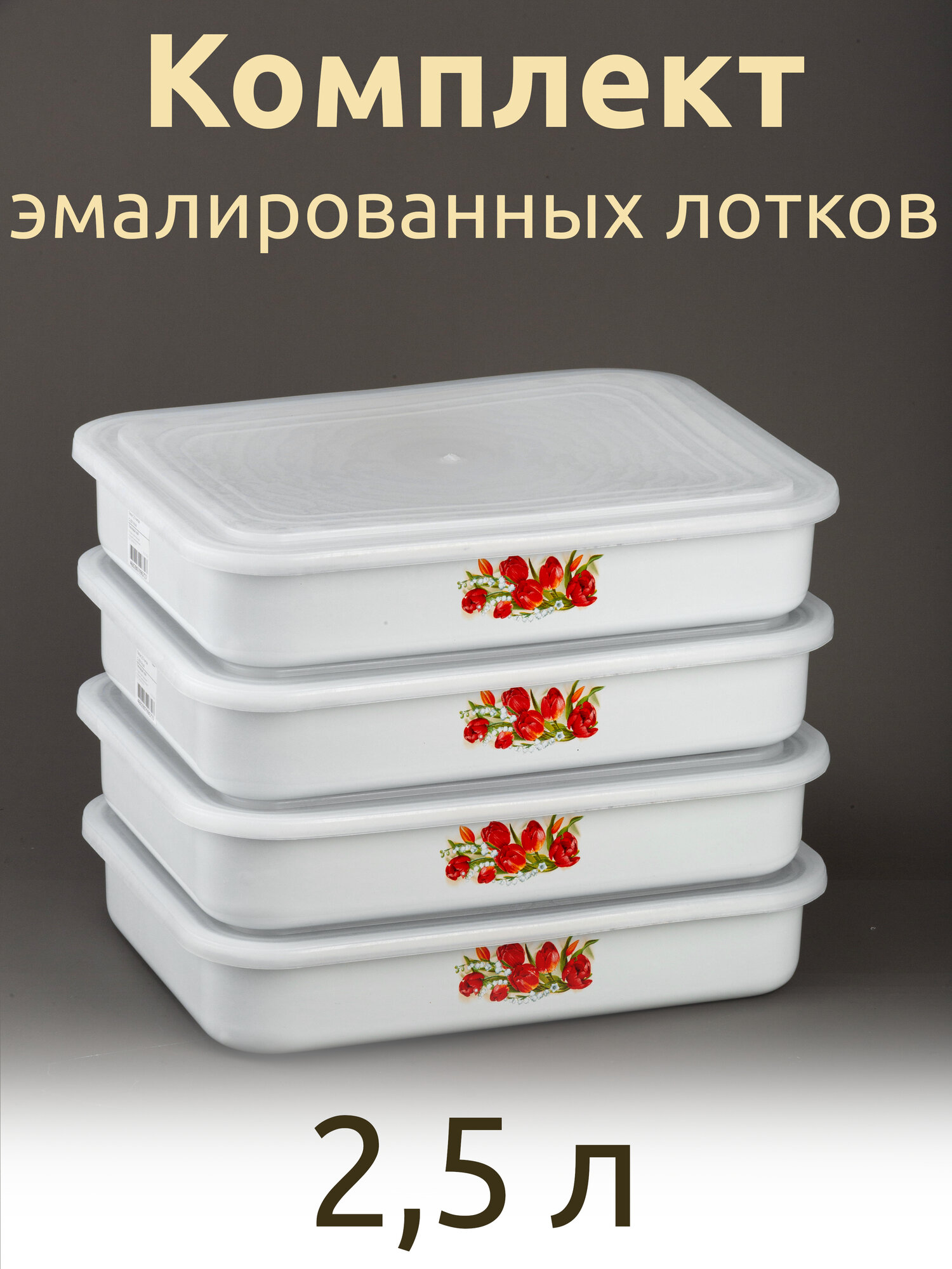 Лоток эмалированный белый 2,5л с рисунком для холодца, емкость для заливного, комплект 4 шт: сравнение цен, характеристики, фото, актуальное наличие и цены.