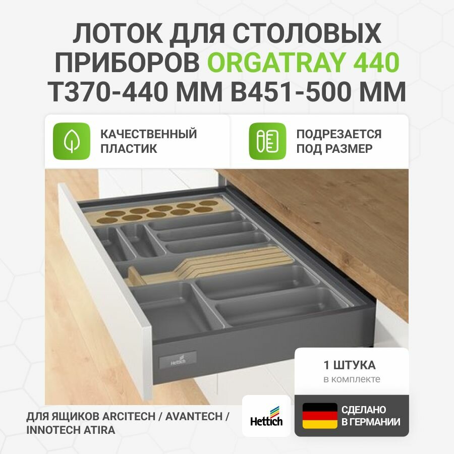 Лоток HETTICH «OrgaTray», для столовых приборов, пластик, черный, 44х50х5.5 см: сравнение цен, характеристики, фото, актуальное наличие и цены.