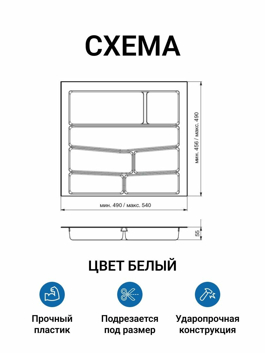Лоток кухонный для столовых приборов 540/490 X 490/456 X 55 мм, пр-во Италия, белый, 1 шт.: сравнение цен, характеристики, фото, актуальное наличие и цены.