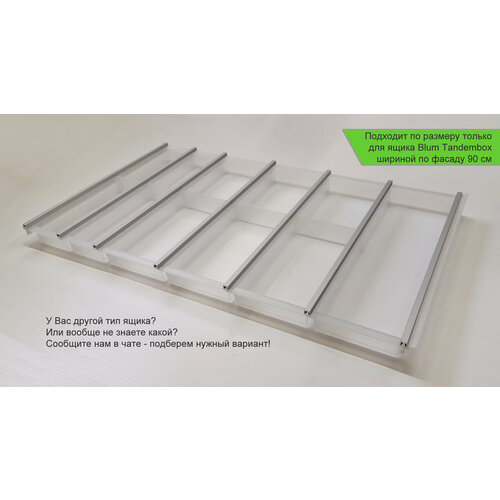 Предлагаемый размер лотка идеально подходит к выдвижным ящика BlumTandembox. Внимание, для ящиков других типов, данный лоток не подойдет! Для этого существуют другие модификации - свяжитесь с нами, пожалуйста, для консультации и подбора.