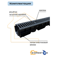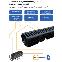 Лоток пластиковый DN100 H120 мм с чугунной щелевой решёткой и крепежом класс С250: сравнение цен, характеристики, фото, актуальное наличие и цены.