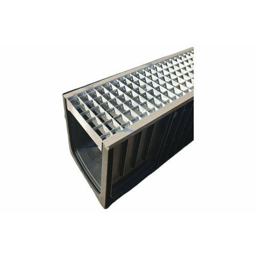 Лоток водоотводный пластиковый DN200 H235 мм с ячеистой стальной оцинкованной решеткой и крепежом класс В125 - надежный помощник в организации стока воды.