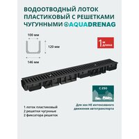 Лоток водоотводный пластиковый Aquadrenag ЛВП Classic AQD DN100 H120 с решеткой чугунной щелевой и крепежом, кл. С250: сравнение цен, характеристики, фото, актуальное наличие и цены.