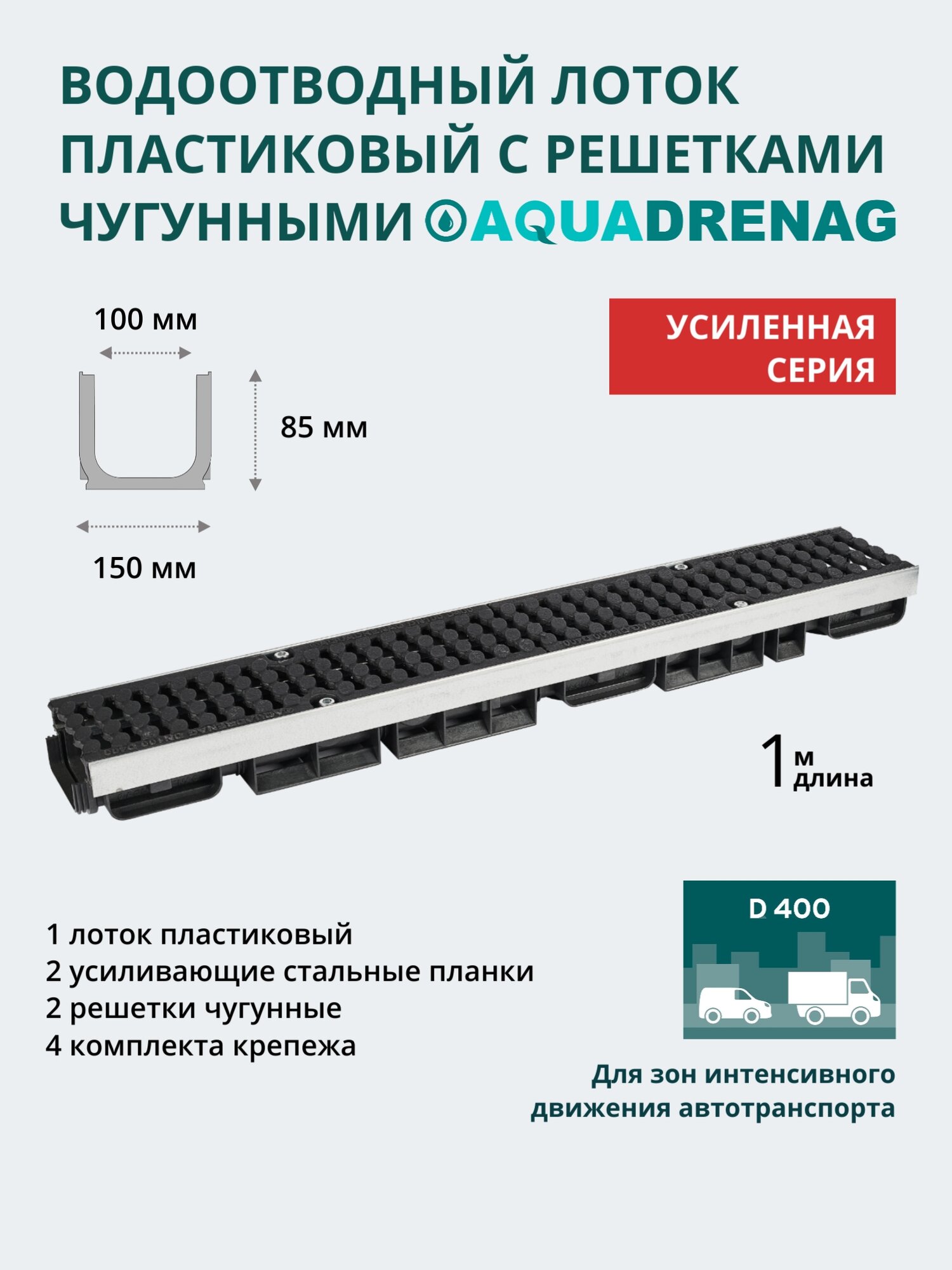 Лоток водоотводный пластиковый Aquadrenag ЛВП Protect AQD DN100 H85 D400 (комплект): сравнение цен, характеристики, фото, актуальное наличие и цены.
