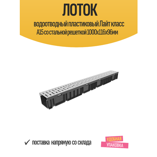 Купить Лоток водоотводный пластиковый Лайт класс А15 со стальной решеткой 1000х116х96мм с доставкой по всей России. Лоток водоотводный пластиковый Лайт класс А15 со стальной решеткой 1000х116х96мм: сравнение цен, характеристики, фото, актуальное наличие и цены.