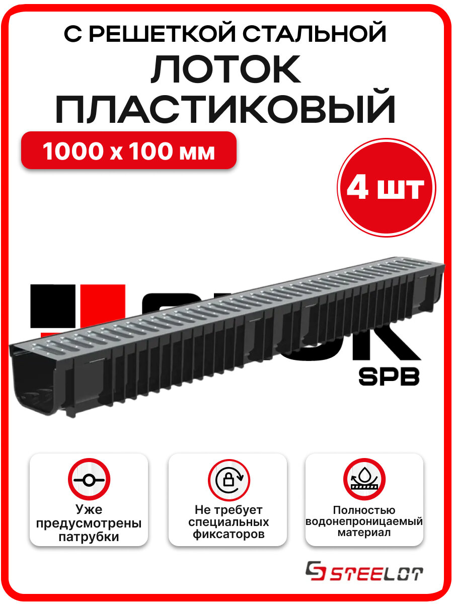 Лоток пластиковый SteePlain DN100 H100 с решеткой стальной — 4шт/уп.: сравнение цен, характеристики, фото, актуальное наличие и цены.