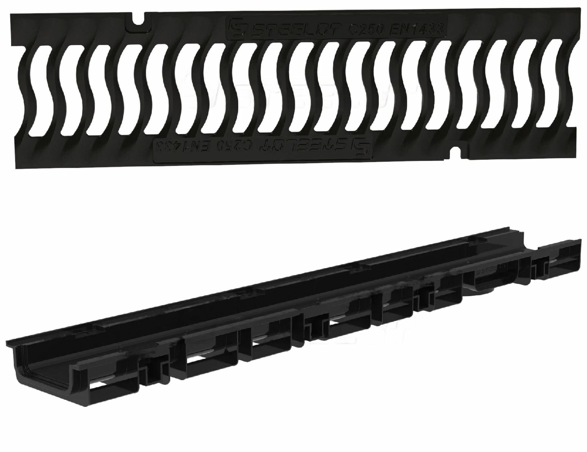 Лоток водоотводный пластиковый SteePlain DN100 H55 (d100 мм, h55 мм) в комплекте с чугунной решеткой волна класса С250: сравнение цен, характеристики, фото, актуальное наличие и цены.