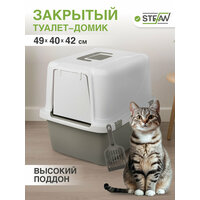 Купить Лоток закрытый, туалет домик для кошек STEFAN, с высокими бортами, средний (M), 49х40х42, серый, BP1911 с доставкой по всей России.