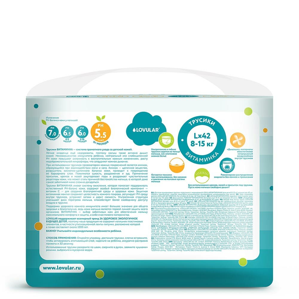 Купить Lovular трусики-подгузники детские витаминка 8-15 кг 42 шт./ l с доставкой по всей России. Lovular трусики-подгузники детские витаминка 8-15 кг 42 шт./ l: сравнение цен, характеристики, фото, актуальное наличие и цены.