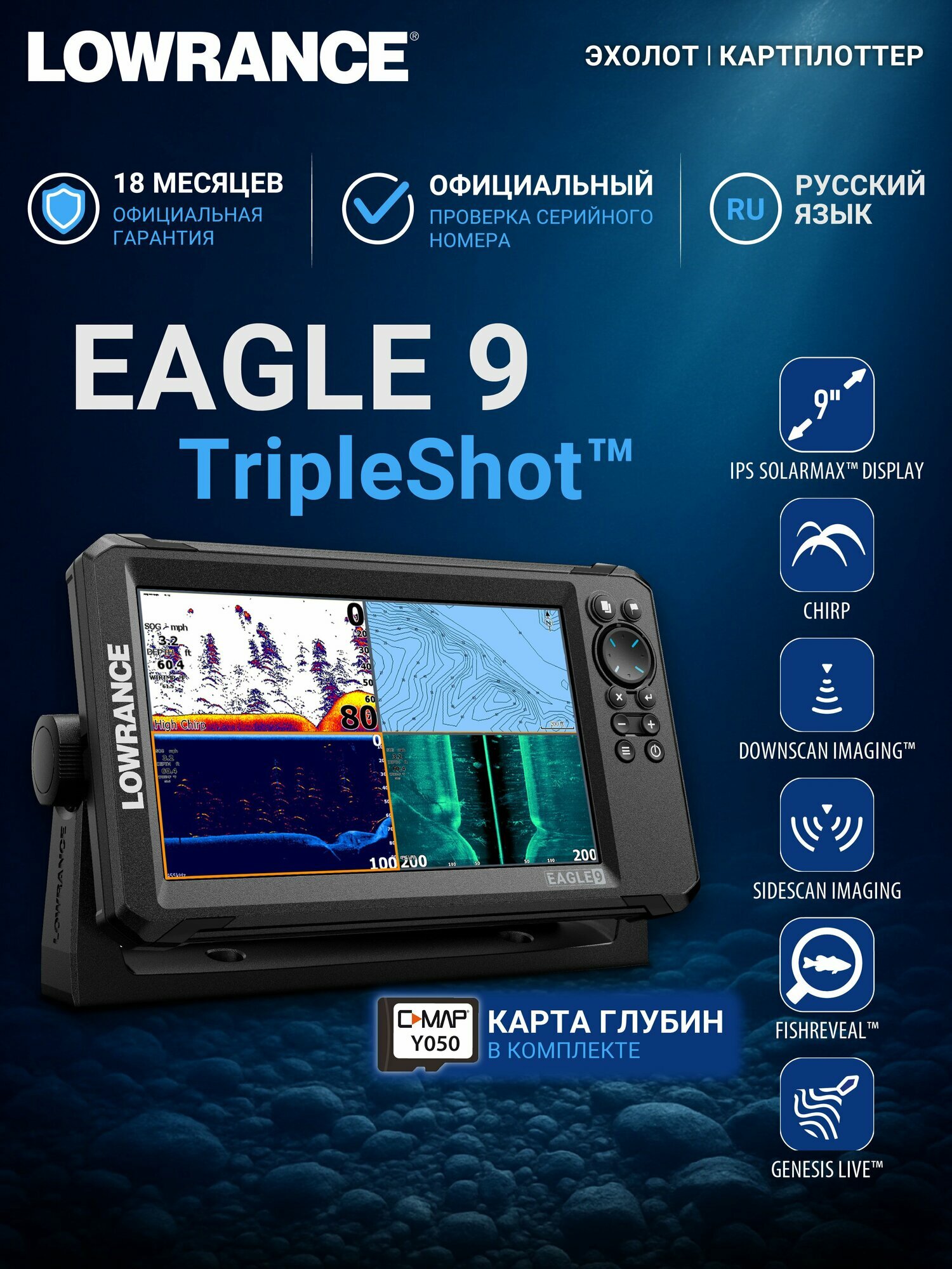 Купить Lowrance Eagle 9 с датчиком TripleShot HD+ карта C-Map Y-050 с доставкой по всей России.