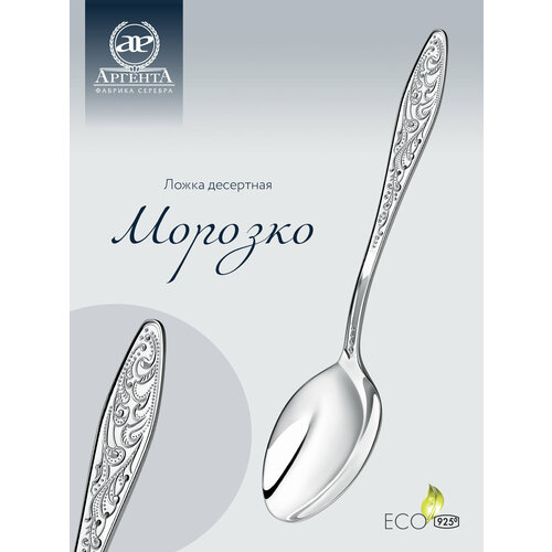 Ложка десертная "Морозко" может использоваться как для десерта, так и для мёда, коктейлей, чая или кофе. Благодаря своим антибактериальным свойствам, серебряные приборы улучшают работу иммунной системы.