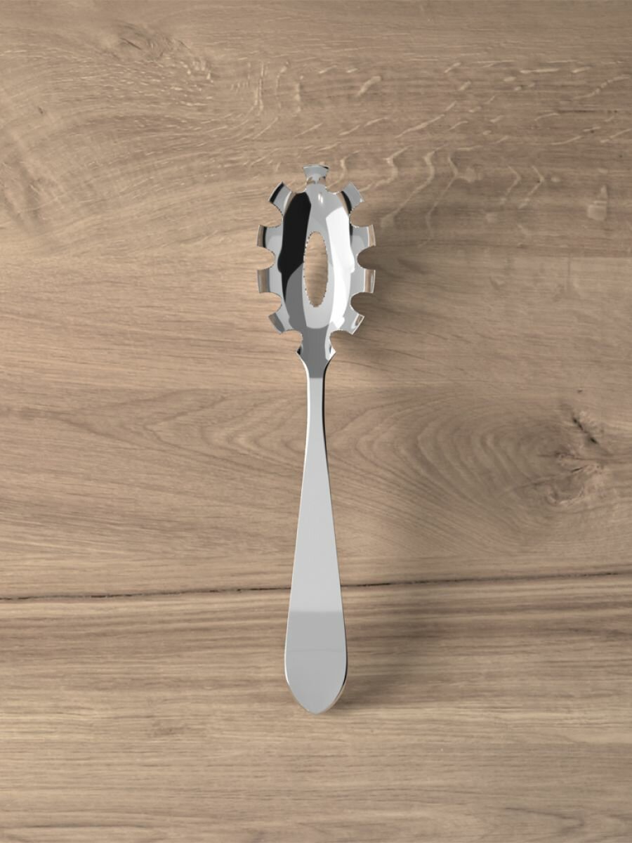 Ложка для пасты из коллекции Sereno XXL от Villeroy & Boch — это изысканный инструмент для настоящих ценителей кулинарной эстетики. Модель длиной 30 см с изящно изогнутой формой создана для безупречной сервировки спагетти, тальятелле и других видов пасты. Особенностью ложки являются деликатные зубчики по краю, которые позволяют аккуратно зацеплять и укладывать даже самые длинные макаронные изделия, сохраняя их идеальный вид на тарелке.