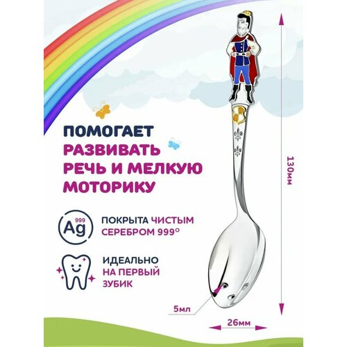 Ложка выполнена из мельхиора, что делает ее прочной и долговечной. Покрытие из серебра толщиной 30 микрон обеспечивает антибактериальные и обеззараживающие свойства, что важно для здоровья малыша. Ложка не вызывает аллергических реакций и улучшает работу иммунной системы.