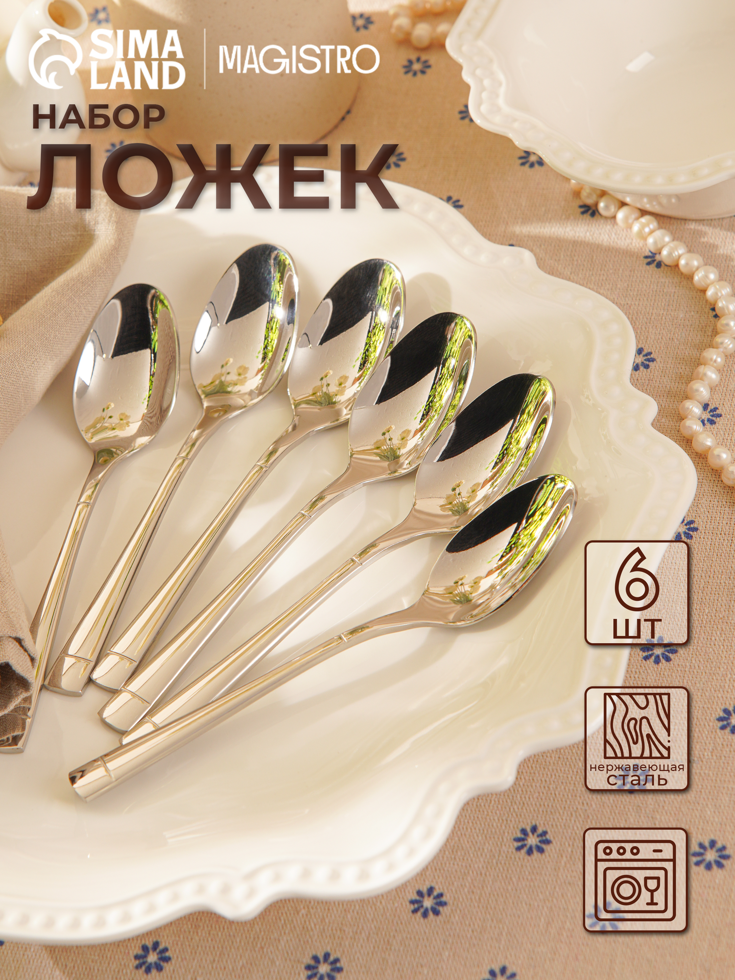 Купить Ложки чайные Magistro «Виконт» набор на 6 персон, h=17 см, нержавеющая сталь, серебристый с доставкой по всей России. Ложки чайные Magistro «Виконт» набор на 6 персон, h=17 см, нержавеющая сталь, серебристый: сравнение цен, характеристики, фото, актуальное наличие и цены.