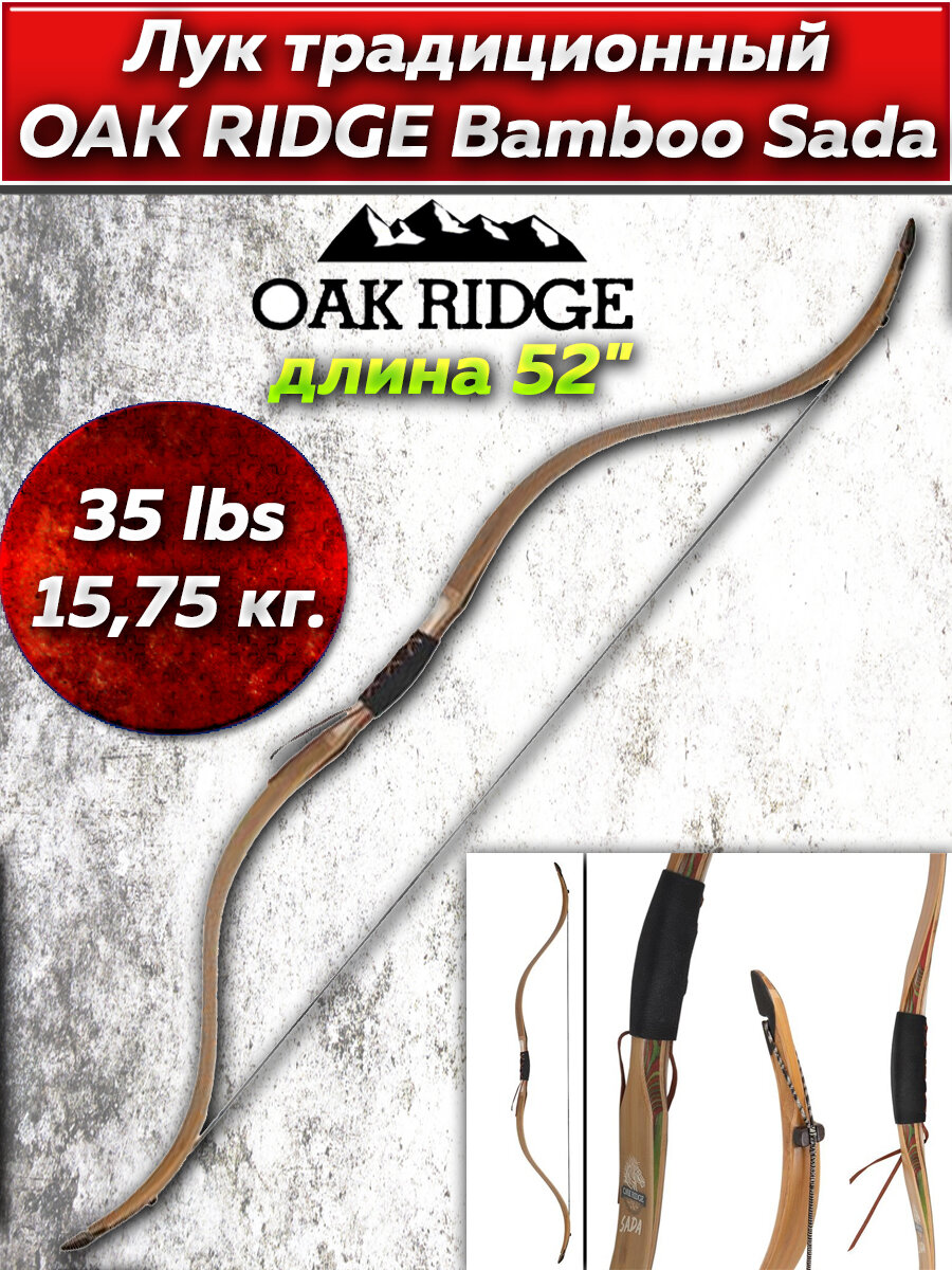 Традиционный двухсторонний лук для верховой стрельбы HORSE BOW BAMBOO SADA — это охотничий лук, выпускаемый европейской фирмой Oak Ridge. Последняя зарекомендовала себя как надёжный производитель луков высокого качества. До недавнего времени, луки для стрельбы верхом на лошади выпускались длиной 48 дюймов, но компания Oak Ridge удленила лук на 4 дюйма, теперь он 52 дюйма, что дает более плавное натяжения и мягкое натяжение. Бамбуковый лук BAMBOO SADA представляет собой красивый конский лук с инкрустированными ламинатами из разноцветного дерева в рукоятке.