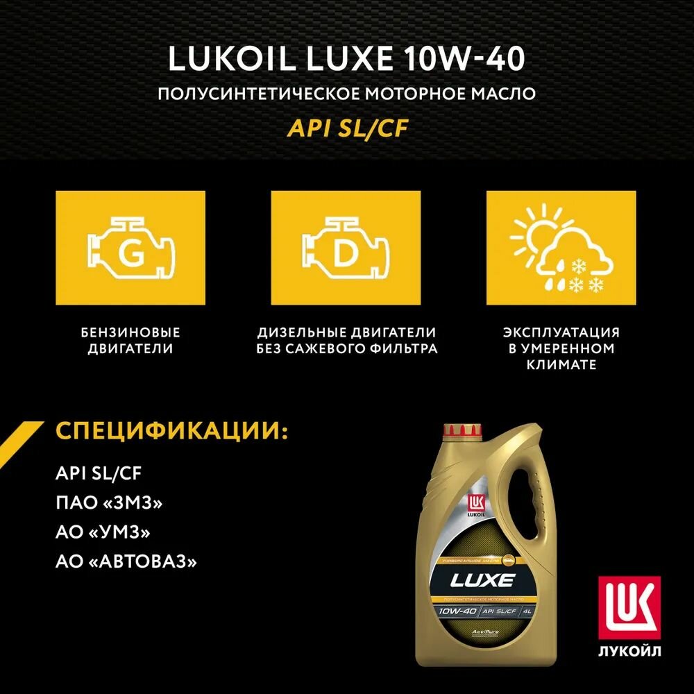 Купить ЛУКОЙЛ (LUKOIL) люкс 10W-40 Масло моторное, Полусинтетическое, 4 л с доставкой по всей России. ЛУКОЙЛ (LUKOIL) люкс 10W-40 Масло моторное, Полусинтетическое, 4 л: сравнение цен, характеристики, фото, актуальное наличие и цены.