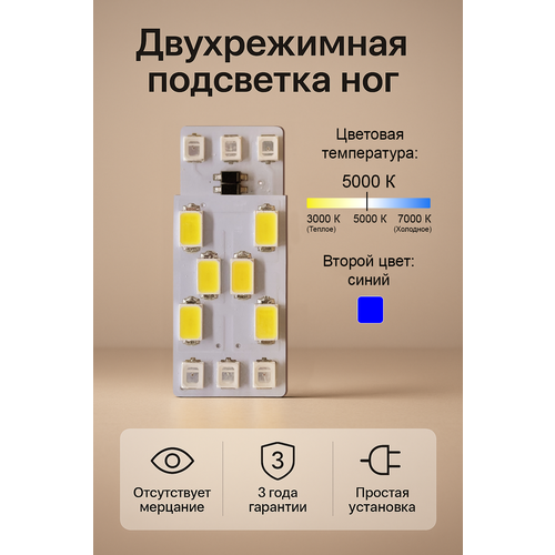 Двухрежимная светодиодная подсветка ног Lumos 5000K Синий - это идеальное решение для тех, кто хочет добавить яркости и индивидуальности своему автомобилю. Она не только улучшает внешний вид салона, но и делает его более комфортным и безопасным в темное время суток.