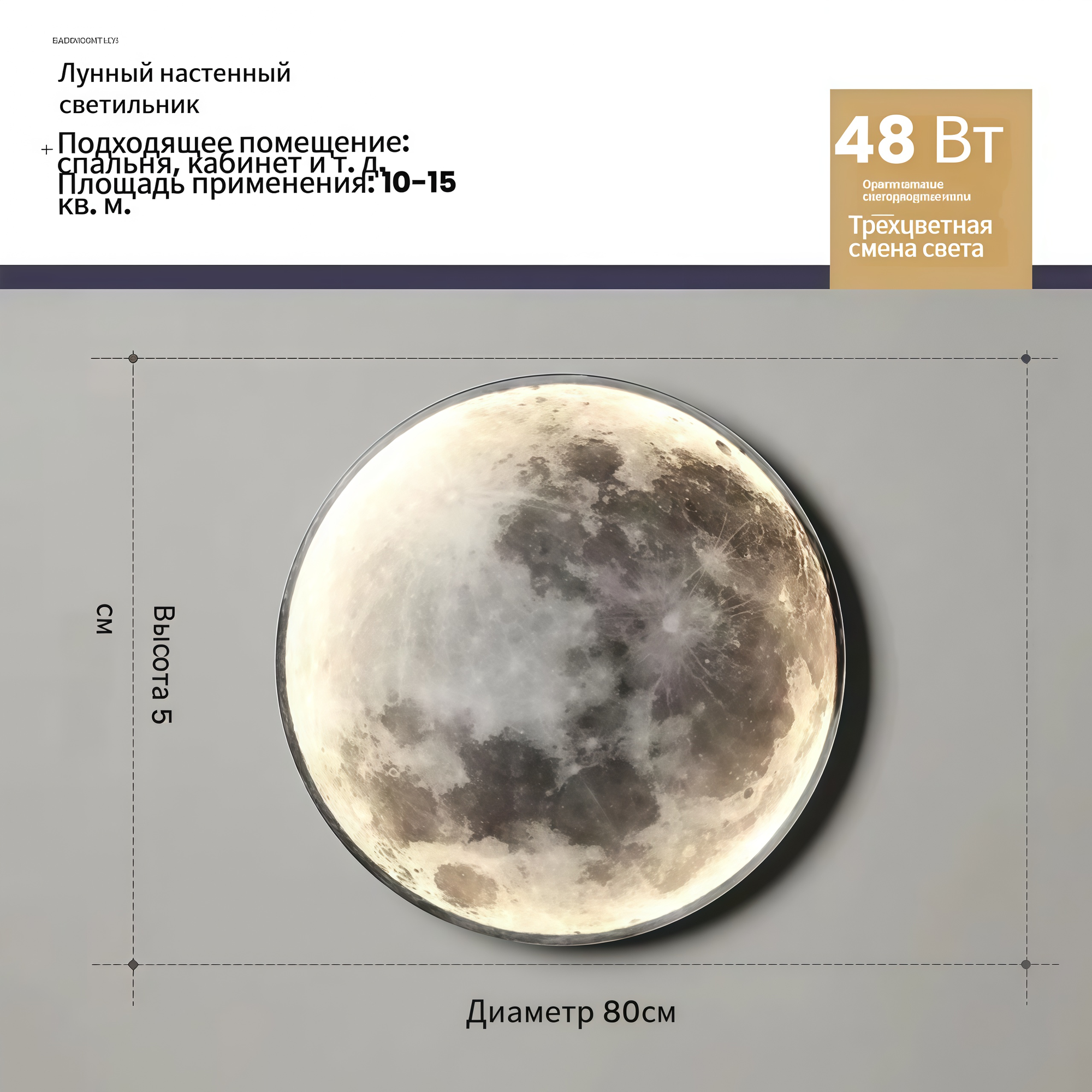 Лунный светильник/ Настенная Лампа-Картина «Луна», диаметром 80 см (LED 24W): сравнение цен, характеристики, фото, актуальное наличие и цены.