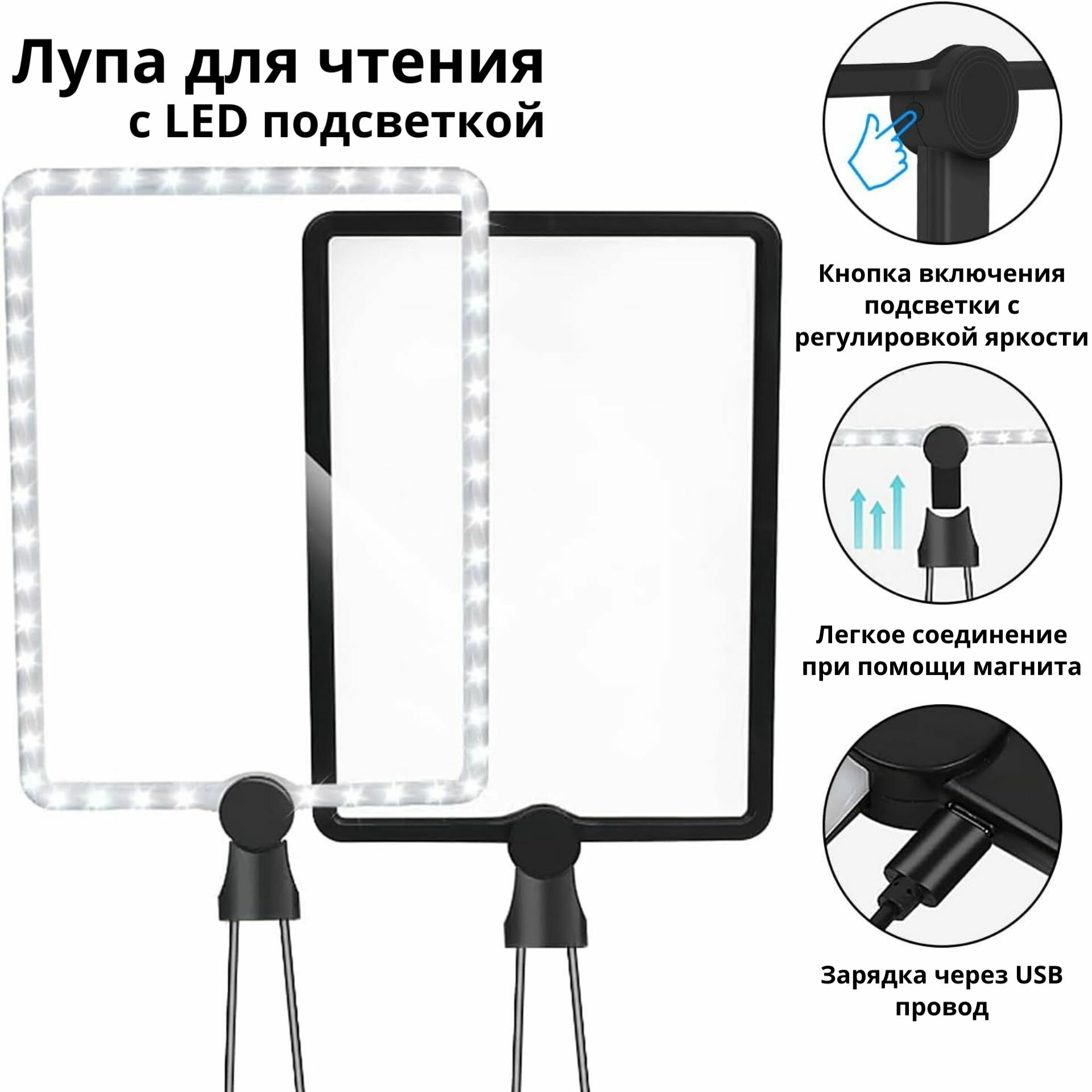 Лупа для чтения с LED подсветкой на гибком шнуре на шею, 5-кратное увеличительное стекло: сравнение цен, характеристики, фото, актуальное наличие и цены.