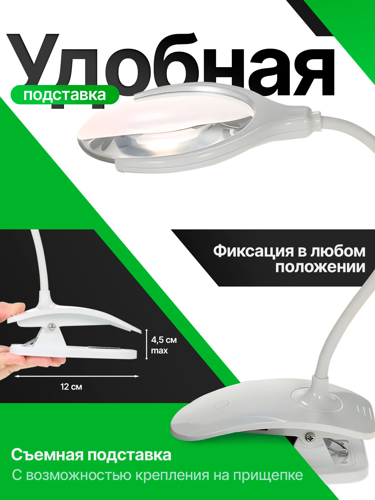 Купить Лупа настольная с подсветкой на гибкой ноге с прищепкой 2 в 1 Орбита OT-INL51 с доставкой по всей России.