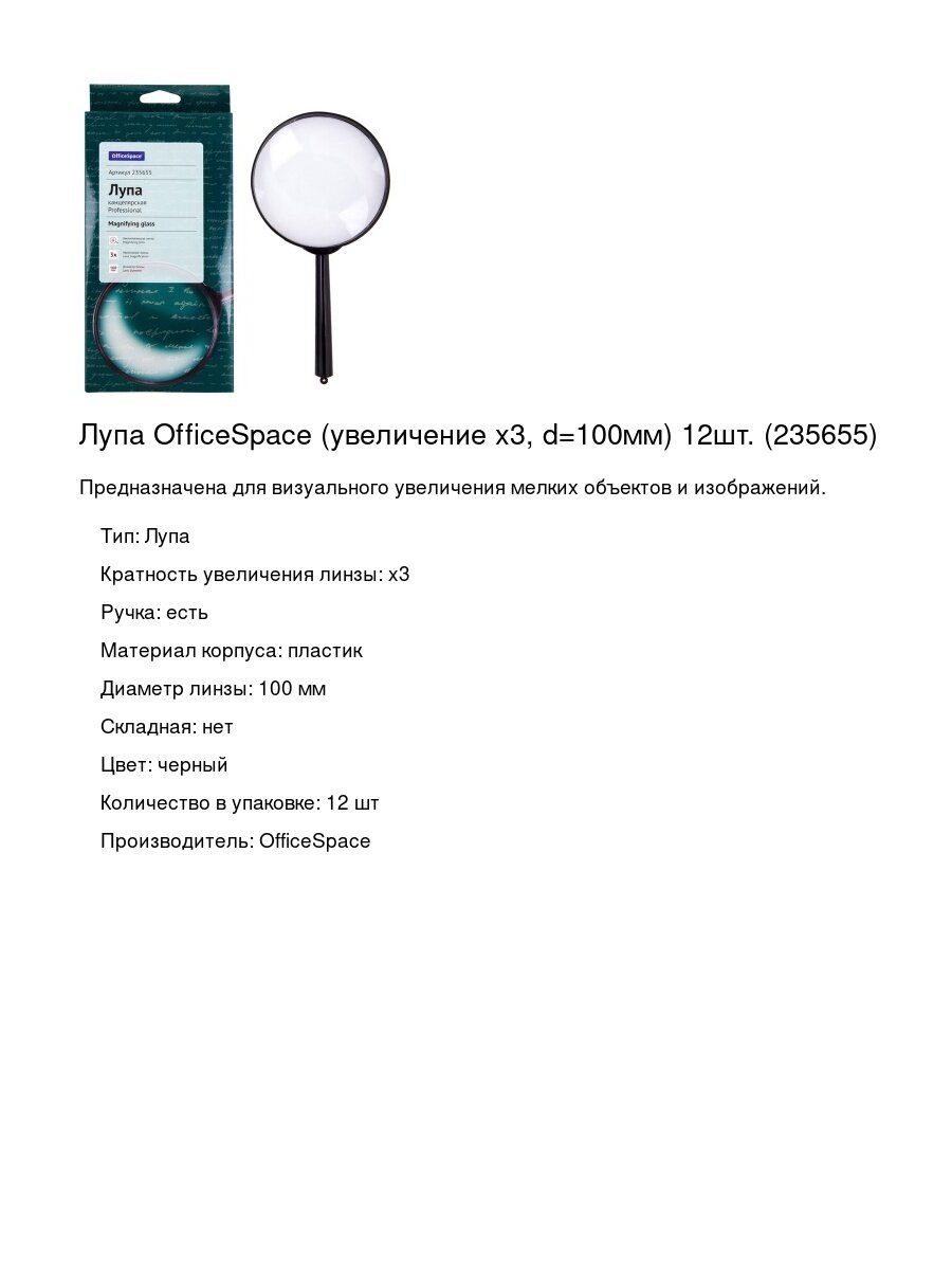 Купить Лупа OfficeSpace (увеличение х3, d=100мм) 12шт. (235655) с доставкой по всей России. Лупа OfficeSpace (увеличение х3, d=100мм) 12шт. (235655): сравнение цен, характеристики, фото, актуальное наличие и цены.
