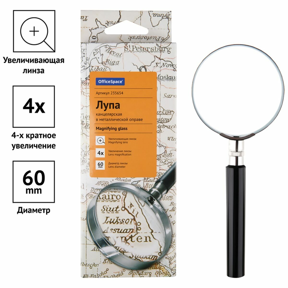Лупа OfficeSpace (увеличение х4, d=60мм, в металлической оправе) (235654), 120шт.: сравнение цен, характеристики, фото, актуальное наличие и цены.
