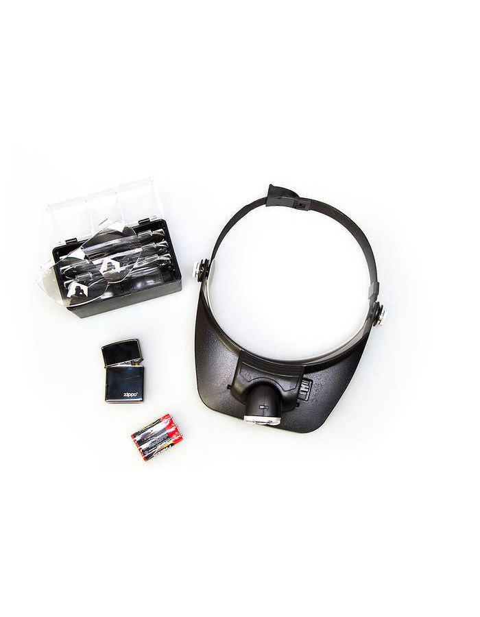 комплектация: Лупа налобная с подсветкой Veber 81001-3Led, 1,2x-3,5x, 4 линзы с разными увеличениями, 3 батарейки типа AAA 1.5V, Инструкция на русском языке