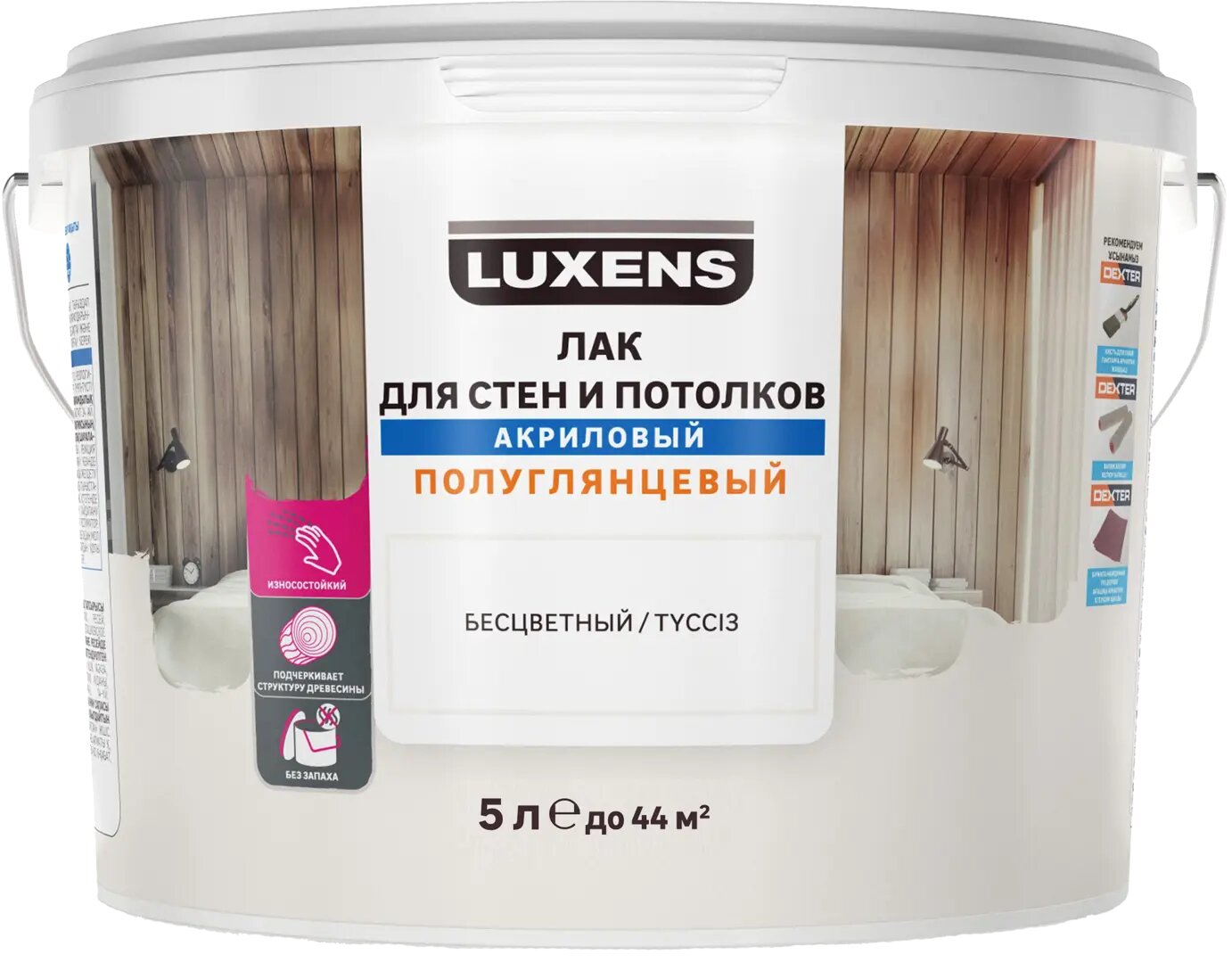 Купить Лак для стен и потолков Luxens акриловый бесцветный полуглянцевый 5 л с доставкой по всей России. Лак для стен и потолков Luxens акриловый бесцветный полуглянцевый 5 л: сравнение цен, характеристики, фото, актуальное наличие и цены.