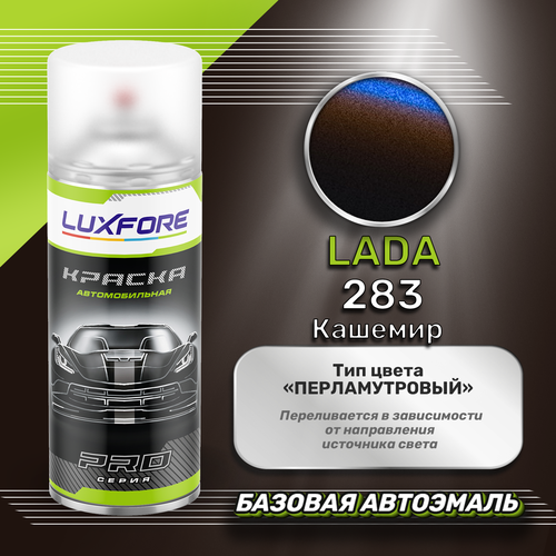Аэрозольная краска базовая эмаль Luxfore в баллончике 400 мл, по цветовому каталогу LADA, цвет 283 Кашемир. Премиальная автомобильная краска, обладает высокой укрывистостью и скоростью сушки, что позволит вам: быстро и качественно провести предпродажную подготовку автомобиля, а также выполнить небольшой ремонт лакокрасочного покрытия самостоятельно. Примечание: Внимание! Все базовые автоэмали, не покрытые автомобильным лаком имеют тусклый матовый цвет, а также подвержены воздействию окружающей среды. Помните, что базовые автомобильные краски необходимо обязательно покрывать автомобильным лаком для защиты от воздействия окружающей среды, а также получения законченного глянцевого вида.