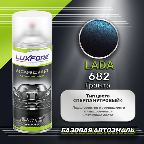 Аэрозольная краска базовая эмаль Luxfore в баллончике 400 мл, по цветовому каталогу LADA, цвет 682 Гранта. Премиальная автомобильная краска, обладает высокой укрывистостью и скоростью сушки, что позволит вам: быстро и качественно провести предпродажную подготовку автомобиля, а также выполнить небольшой ремонт лакокрасочного покрытия самостоятельно. Примечание: Внимание! Все базовые автоэмали, не покрытые автомобильным лаком имеют тусклый матовый цвет, а также подвержены воздействию окружающей среды. Помните, что базовые автомобильные краски необходимо обязательно покрывать автомобильным лаком для защиты от воздействия окружающей среды, а также получения законченного глянцевого вида.