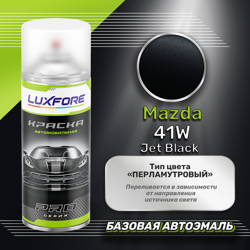 Аэрозольная краска базовая эмаль Luxfore в баллончике 400 мл, по цветовому каталогу Mazda, цвет 41W Jet Black. Премиальная автомобильная краска, обладает высокой укрывистостью и скоростью сушки, что позволит вам: быстро и качественно провести предпродажную подготовку автомобиля, а также выполнить небольшой ремонт лакокрасочного покрытия самостоятельно. Примечание: Внимание! Все базовые автоэмали, не покрытые автомобильным лаком имеют тусклый матовый цвет, а также подвержены воздействию окружающей среды. Помните, что базовые автомобильные краски необходимо обязательно покрывать автомобильным лаком для защиты от воздействия окружающей среды, а также получения законченного глянцевого вида.