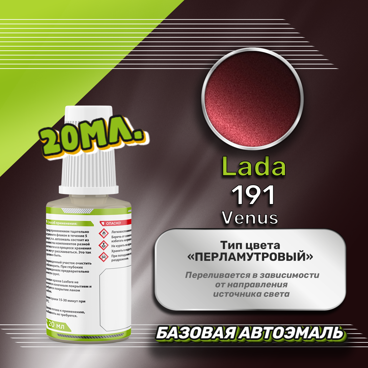 Базовая автоэмаль Luxfore в подкраске с кисточкой объемом 20мл, по цветовому каталогу LADA, цвет 191 Венера. Премиальная автомобильная краска, обладает высокой укрывистостью и скоростью сушки, что позволит вам: быстро и качественно провести предпродажную подготовку автомобиля, а также выполнить небольшой ремонт лакокрасочного покрытия самостоятельно. Примечание: Внимание! Все базовые автоэмали, не покрытые автомобильным лаком имеют тусклый матовый цвет, а также подвержены воздействию окружающей среды. Помните, что базовые автомобильные краски необходимо обязательно покрывать автомобильным лаком для защиты от воздействия окружающей среды, а также получения законченного глянцевого вида.