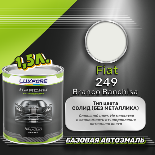 Базовая автоэмаль Luxfore в банке объемом 1500 мл, по цветовому каталогу Fiat, цвет 249 Branco Banchisa. Премиальная автомобильная краска, обладает высокой укрывистостью и скоростью сушки, что позволит вам: быстро и качественно провести предпродажную подготовку автомобиля, а также выполнить небольшой ремонт лакокрасочного покрытия самостоятельно. Примечание: Внимание! Все базовые автоэмали, не покрытые автомобильным лаком имеют тусклый матовый цвет, а также подвержены воздействию окружающей среды. Помните, что базовые автомобильные краски необходимо обязательно покрывать автомобильным лаком для защиты от воздействия окружающей среды, а также получения законченного глянцевого вида.