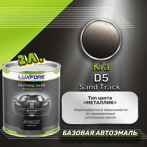 Базовая автоэмаль Luxfore в банке объемом 2000 мл, по цветовому каталогу Kia, цвет D5 Sand Track. Премиальная автомобильная краска, обладает высокой укрывистостью и скоростью сушки, что позволит вам: быстро и качественно провести предпродажную подготовку автомобиля, а также выполнить небольшой ремонт лакокрасочного покрытия самостоятельно. Примечание: Внимание! Все базовые автоэмали, не покрытые автомобильным лаком имеют тусклый матовый цвет, а также подвержены воздействию окружающей среды. Помните, что базовые автомобильные краски необходимо обязательно покрывать автомобильным лаком для защиты от воздействия окружающей среды, а также получения законченного глянцевого вида.