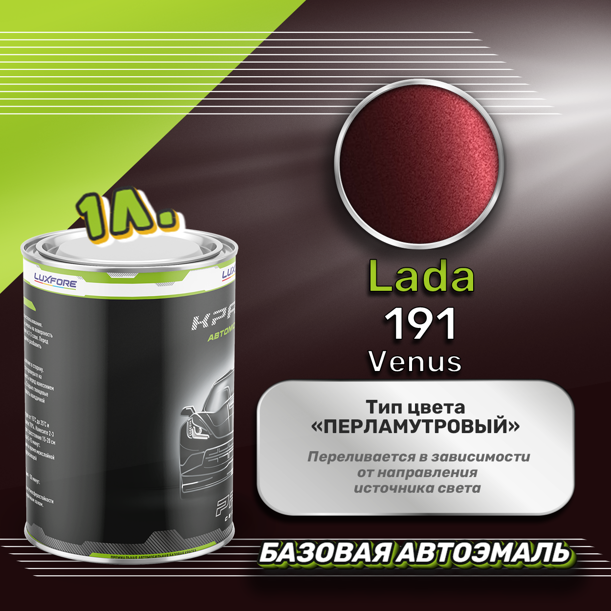 Базовая автоэмаль Luxfore в банке объемом 1000 мл, по цветовому каталогу LADA, цвет 191 Венера. Премиальная автомобильная краска, обладает высокой укрывистостью и скоростью сушки, что позволит вам: быстро и качественно провести предпродажную подготовку автомобиля, а также выполнить небольшой ремонт лакокрасочного покрытия самостоятельно. Примечание: Внимание! Все базовые автоэмали, не покрытые автомобильным лаком имеют тусклый матовый цвет, а также подвержены воздействию окружающей среды. Помните, что базовые автомобильные краски необходимо обязательно покрывать автомобильным лаком для защиты от воздействия окружающей среды, а также получения законченного глянцевого вида.