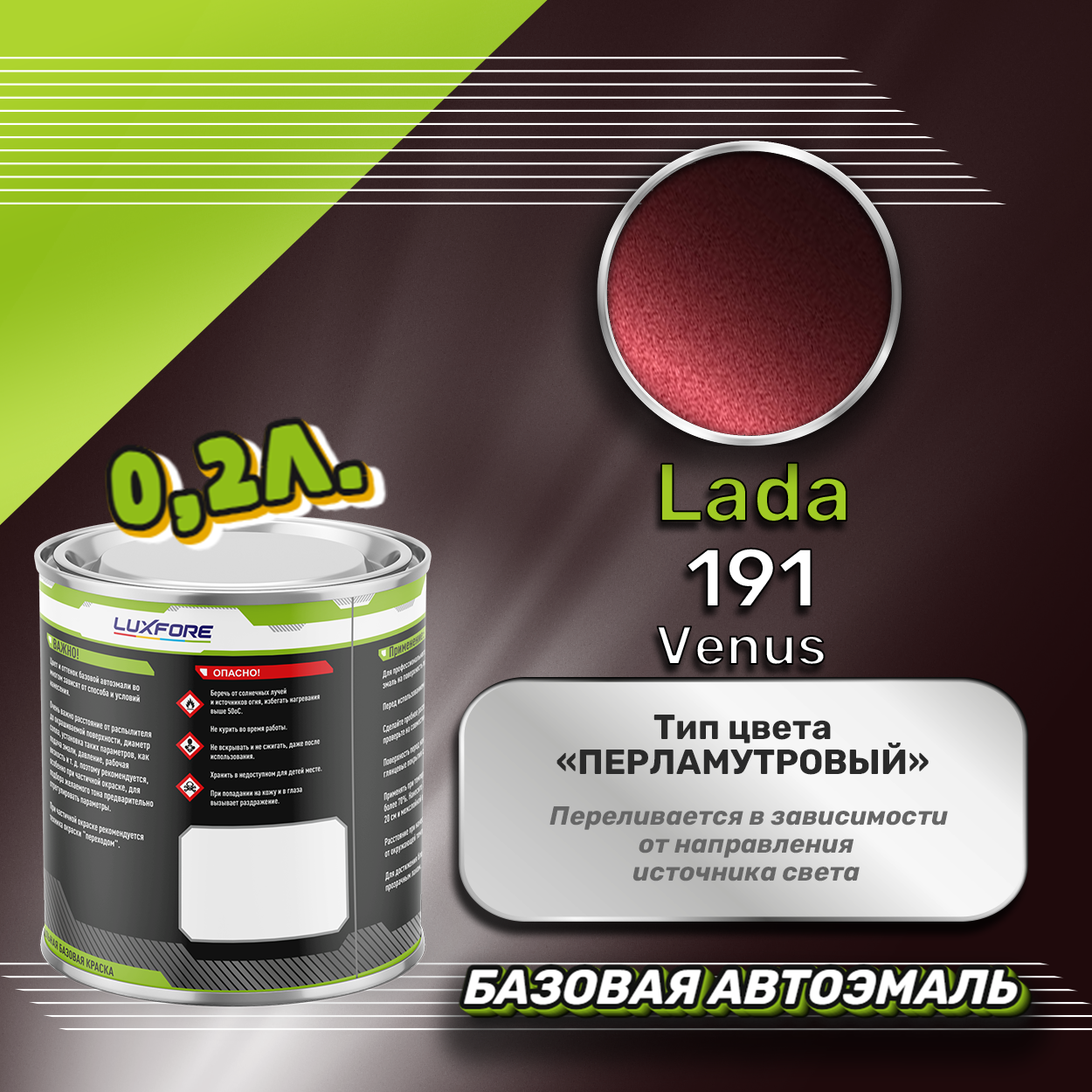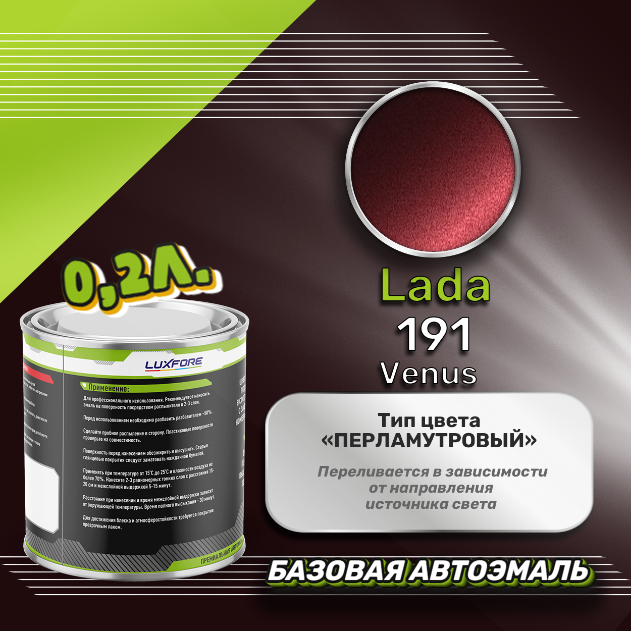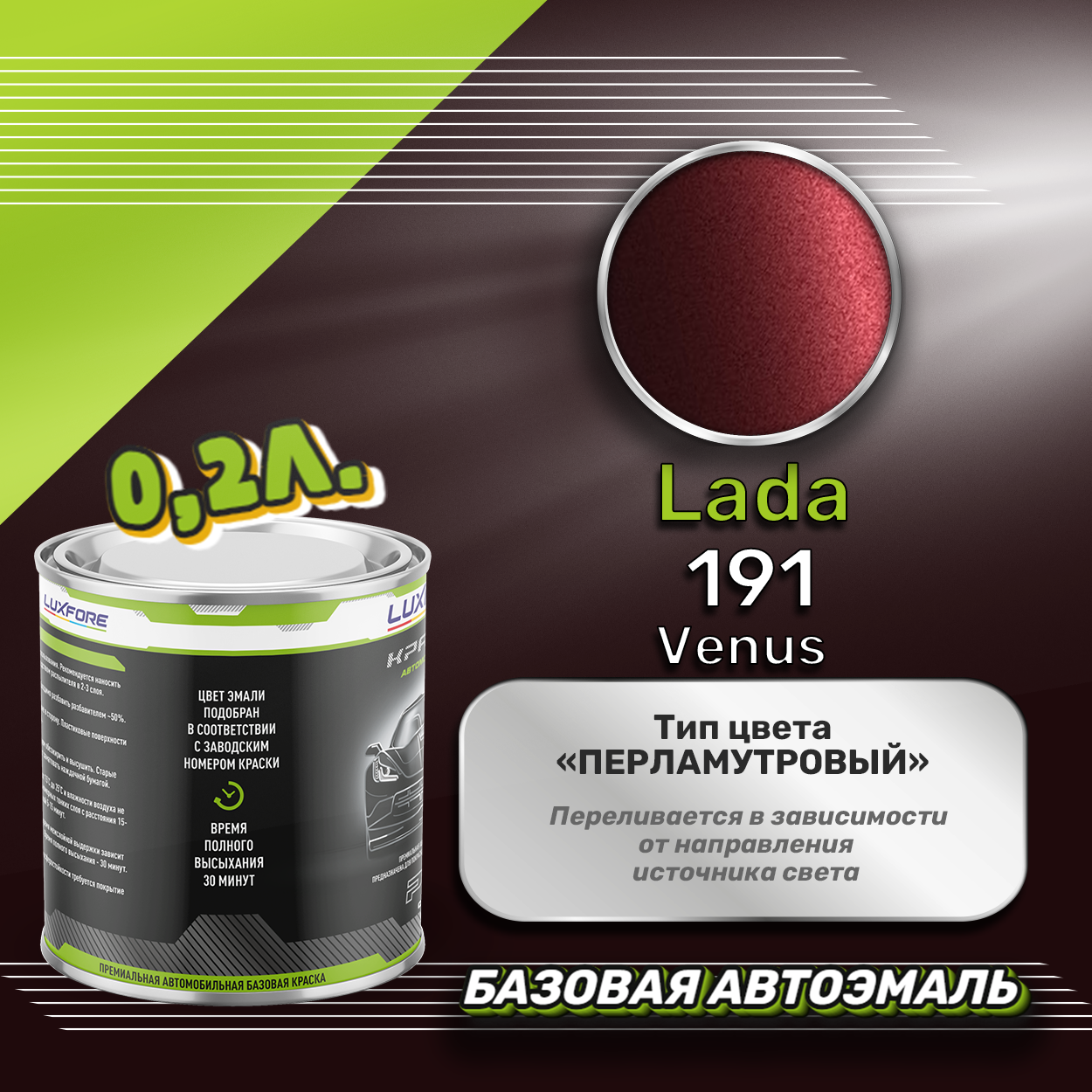 Базовая автоэмаль Luxfore в банке объемом 200 мл, по цветовому каталогу LADA, цвет 191 Венера. Премиальная автомобильная краска, обладает высокой укрывистостью и скоростью сушки, что позволит вам: быстро и качественно провести предпродажную подготовку автомобиля, а также выполнить небольшой ремонт лакокрасочного покрытия самостоятельно. Примечание: Внимание! Все базовые автоэмали, не покрытые автомобильным лаком имеют тусклый матовый цвет, а также подвержены воздействию окружающей среды. Помните, что базовые автомобильные краски необходимо обязательно покрывать автомобильным лаком для защиты от воздействия окружающей среды, а также получения законченного глянцевого вида.