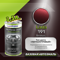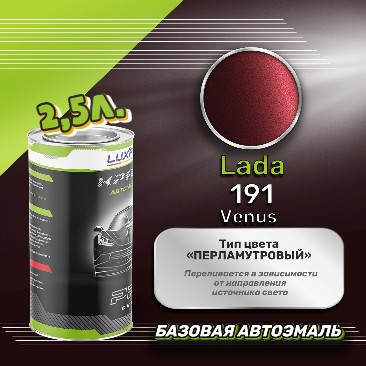 Базовая автоэмаль Luxfore в банке объемом 2500 мл, по цветовому каталогу LADA, цвет 191 Венера. Премиальная автомобильная краска, обладает высокой укрывистостью и скоростью сушки, что позволит вам: быстро и качественно провести предпродажную подготовку автомобиля, а также выполнить небольшой ремонт лакокрасочного покрытия самостоятельно. Примечание: Внимание! Все базовые автоэмали, не покрытые автомобильным лаком имеют тусклый матовый цвет, а также подвержены воздействию окружающей среды. Помните, что базовые автомобильные краски необходимо обязательно покрывать автомобильным лаком для защиты от воздействия окружающей среды, а также получения законченного глянцевого вида.