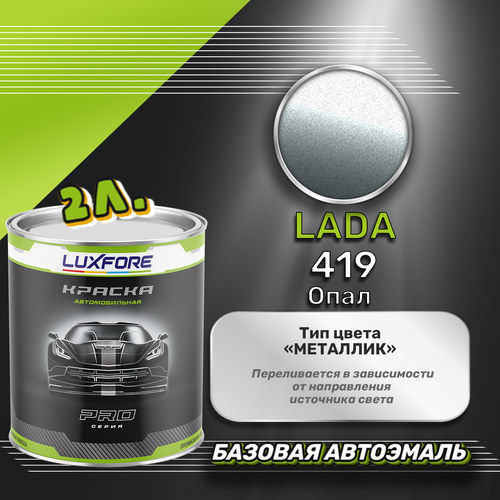 Базовая автоэмаль Luxfore в банке объемом 2000 мл, по цветовому каталогу LADA, цвет 419 Опал. Премиальная автомобильная краска, обладает высокой укрывистостью и скоростью сушки, что позволит вам: быстро и качественно провести предпродажную подготовку автомобиля, а также выполнить небольшой ремонт лакокрасочного покрытия самостоятельно. Примечание: Внимание! Все базовые автоэмали, не покрытые автомобильным лаком имеют тусклый матовый цвет, а также подвержены воздействию окружающей среды. Помните, что базовые автомобильные краски необходимо обязательно покрывать автомобильным лаком для защиты от воздействия окружающей среды, а также получения законченного глянцевого вида.