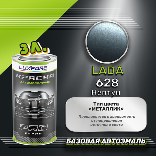 Базовая автоэмаль Luxfore в банке объемом 3000 мл, по цветовому каталогу LADA, цвет 628 Нептун. Премиальная автомобильная краска, обладает высокой укрывистостью и скоростью сушки, что позволит вам: быстро и качественно провести предпродажную подготовку автомобиля, а также выполнить небольшой ремонт лакокрасочного покрытия самостоятельно. Примечание: Внимание! Все базовые автоэмали, не покрытые автомобильным лаком имеют тусклый матовый цвет, а также подвержены воздействию окружающей среды. Помните, что базовые автомобильные краски необходимо обязательно покрывать автомобильным лаком для защиты от воздействия окружающей среды, а также получения законченного глянцевого вида.