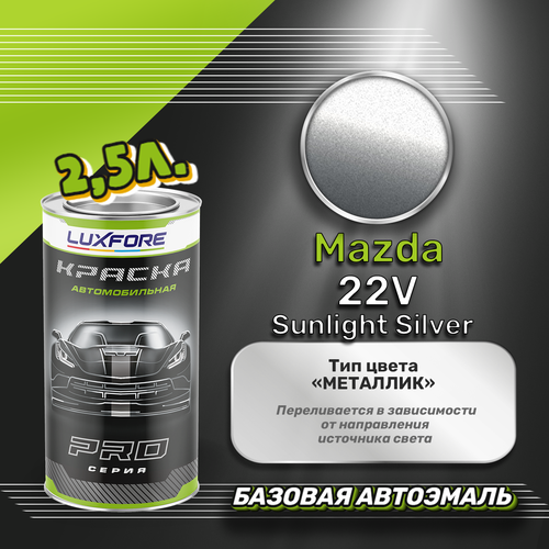 Базовая автоэмаль Luxfore в банке объемом 2500 мл, по цветовому каталогу Mazda, цвет 22V Sunlight Silver. Премиальная автомобильная краска, обладает высокой укрывистостью и скоростью сушки, что позволит вам: быстро и качественно провести предпродажную подготовку автомобиля, а также выполнить небольшой ремонт лакокрасочного покрытия самостоятельно. Примечание: Внимание! Все базовые автоэмали, не покрытые автомобильным лаком имеют тусклый матовый цвет, а также подвержены воздействию окружающей среды. Помните, что базовые автомобильные краски необходимо обязательно покрывать автомобильным лаком для защиты от воздействия окружающей среды, а также получения законченного глянцевого вида.