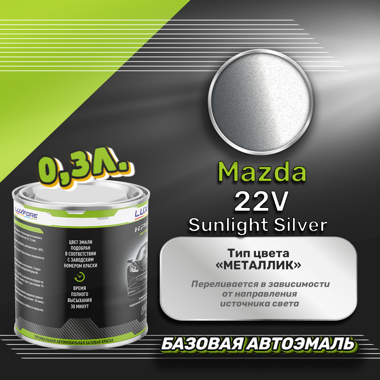 Базовая автоэмаль Luxfore в банке объемом 300 мл, по цветовому каталогу Mazda, цвет 22V Sunlight Silver. Премиальная автомобильная краска, обладает высокой укрывистостью и скоростью сушки, что позволит вам: быстро и качественно провести предпродажную подготовку автомобиля, а также выполнить небольшой ремонт лакокрасочного покрытия самостоятельно. Примечание: Внимание! Все базовые автоэмали, не покрытые автомобильным лаком имеют тусклый матовый цвет, а также подвержены воздействию окружающей среды. Помните, что базовые автомобильные краски необходимо обязательно покрывать автомобильным лаком для защиты от воздействия окружающей среды, а также получения законченного глянцевого вида.