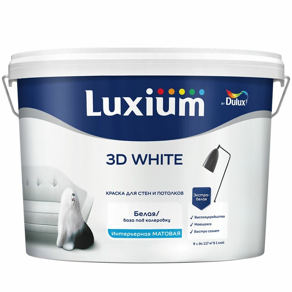 Купить Luxium (dulux) 3d white / люксиум 3д вайт краска для стен и потолков ослепительно белая матовая, база bw, белая, 9л с доставкой по всей России.