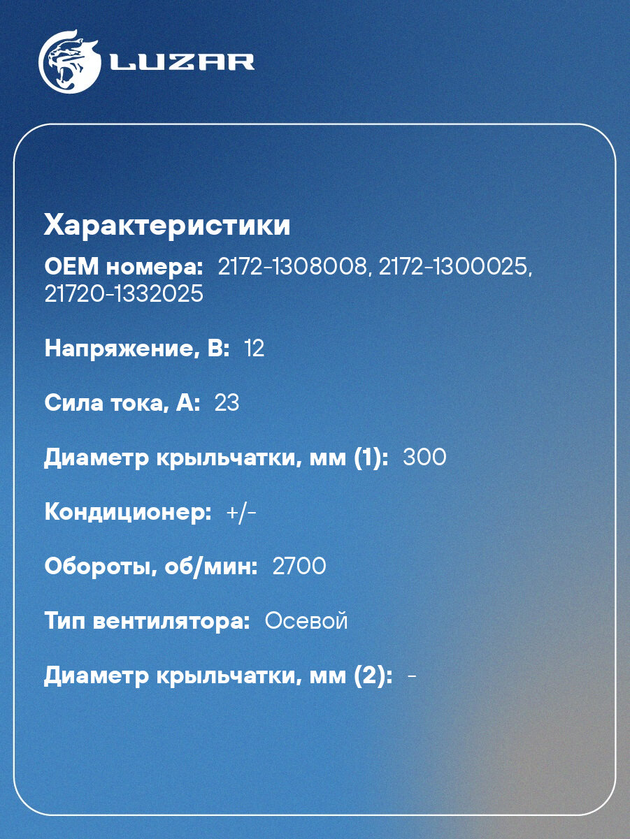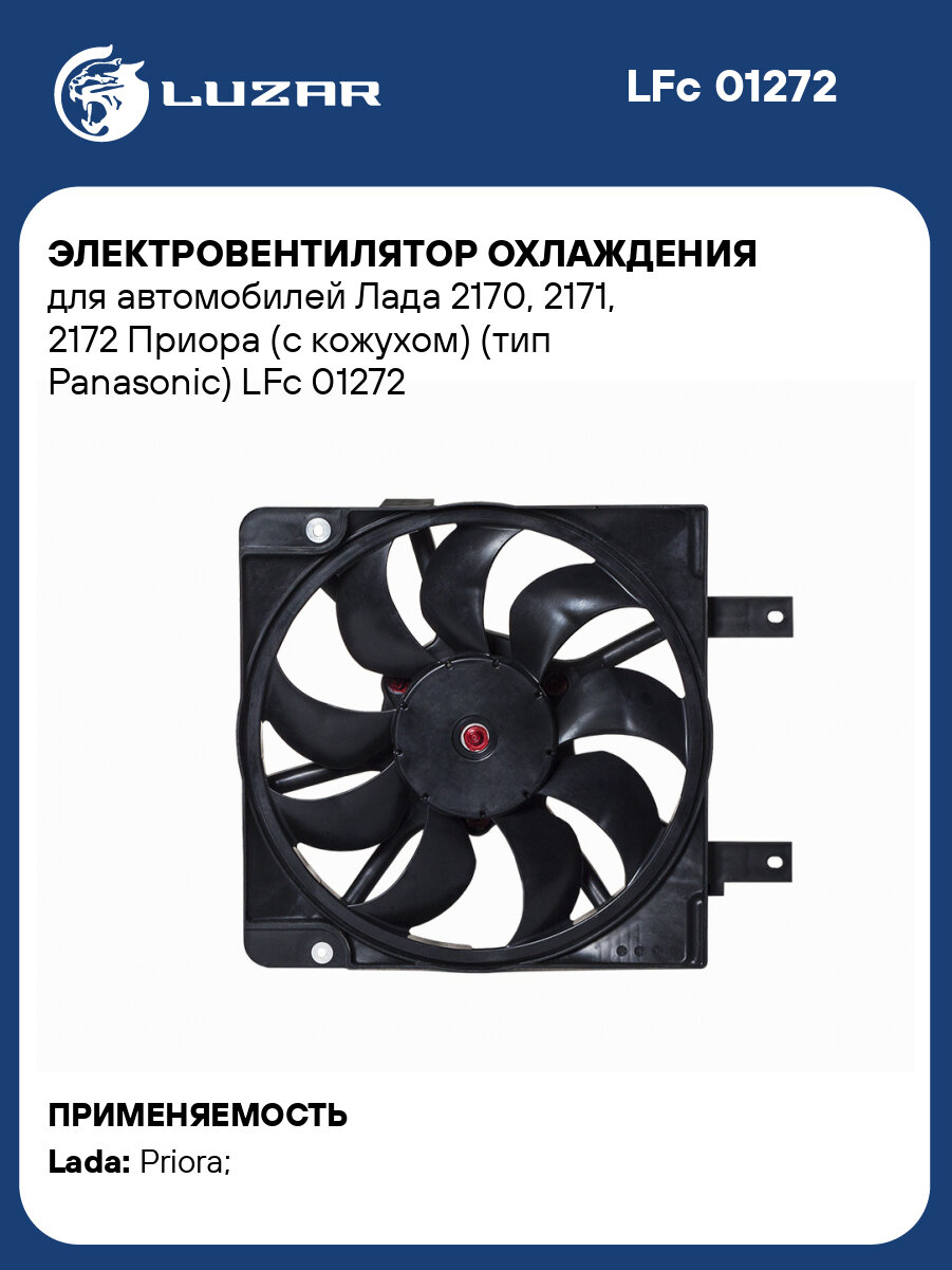 Электровентилятор охлаждения для автомобилей Лада 2170, 2171, 2172 Приора (с кожухом) (тип Panasonic) LFc 01272 LUZAR: сравнение цен, характеристики, фото, актуальное наличие и цены.