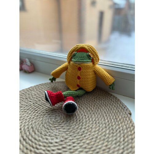 Лягушонок Хьюго в дождевике и сапожках. Вязаная игрушка. Жаба зеленая в одежде ручной работы 20см. Лягушка в плаще и пальто.: сравнение цен, характеристики, фото, актуальное наличие и цены.