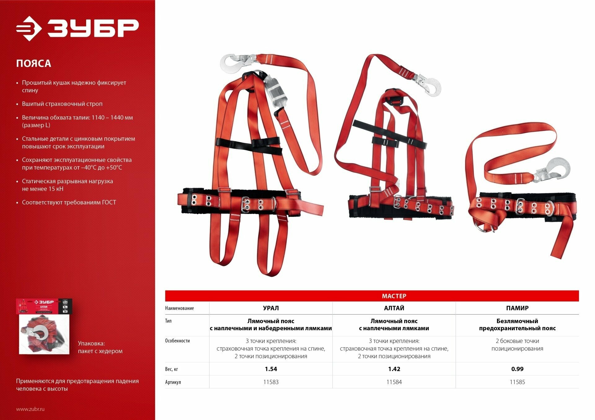 Лямочный пояс ЗУБР Урал с 3 точками крепления ленточный строп с амортизатором 30 см обхват ремня 1140-1440 мм: сравнение цен, характеристики, фото, актуальное наличие и цены.